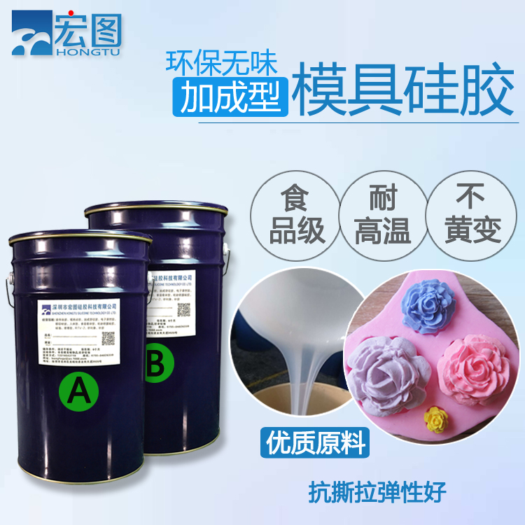 加成型模具硅膠也叫加成型硅膠、環保硅膠等,由AB雙組分構成,A為硅膠,B為鉑金催化劑。加成型硅膠可室溫固化也可加溫固化。